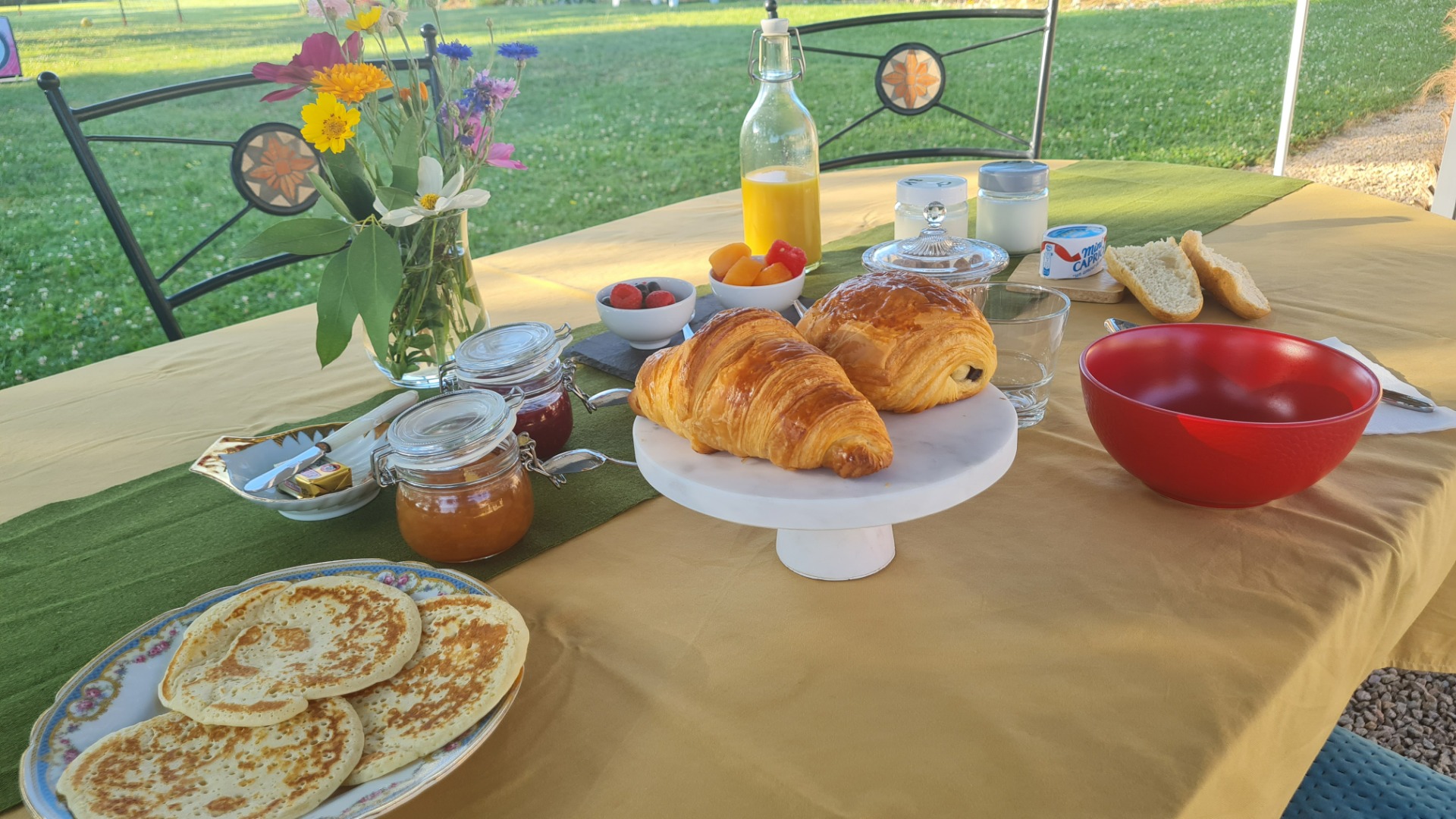 Le petit déjeuner avec des produits locaux et faits maison est un moment de plaisir et de gourmandise pour bien commencer la journée.